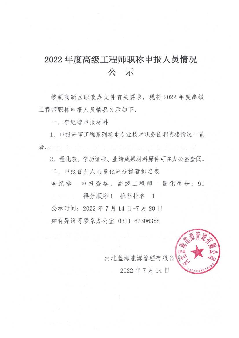 2022年度高級(jí)工程師職稱申報(bào)人員情況公示