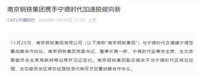 南京鋼鐵集團(tuán)攜手寧德時(shí)代加速脫碳向新